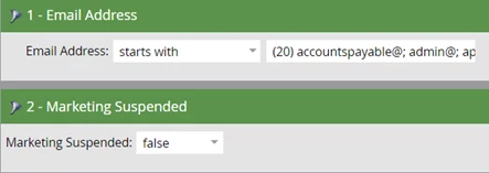 In this example, I am going to create a batch campaign to identify generic email addresses and set them to Marketing Suspended. They will continue to receive operational emails but won’t receive promotional emails. It's optional to set the records to Marketing Suspended.
