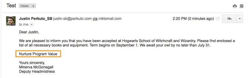 For those emails that are used in multiple streams, a lead may interact with that content at different times in their journey (for example, they may receive it first as an inbound lead, rather than receiving it as someone who comes into the system already marketing qualified). We figured the best way to track these touchpoints is by using inbound link tagging. In order to be able to use the same email across streams, though, we needed to tokenize "Campaign Name", so that we could track which engagement program sent the email that was clicked on.