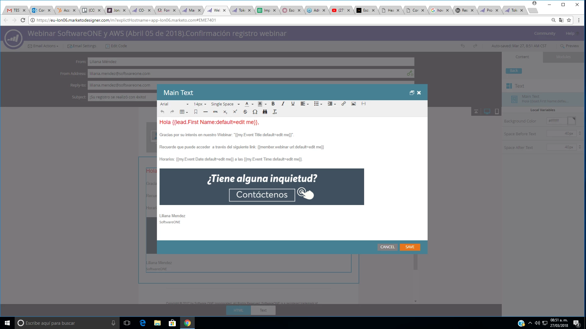 I have a doubt about the tokens configuration in a webinar campaign. I created the email into the program event and also the smart campaign. Then, I put in the draft email the token {{member.webinar url:default=edit me}}, but the link to the webinar is not appearing in the preview email, the others tokens are appearing normally, but that token is not.