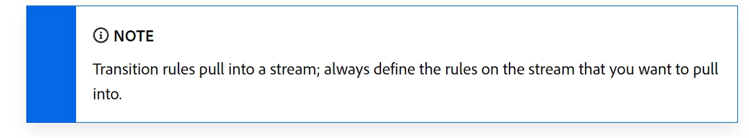"if people clink in this link, send them to stream 2", i am just not sure if i should create this transition rule into the stream 1 (the one that has the link" or in the stream 2 (the one i want them to move).