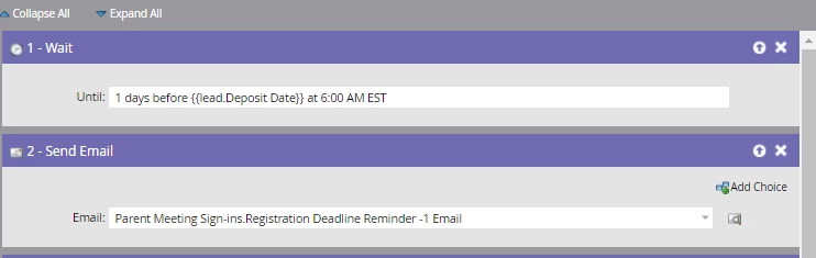 I'm not sure what I'm missing. If a lead has a deposit due on Feb. 24, I want the email to send on Feb. 23 to remind them of their deadline.