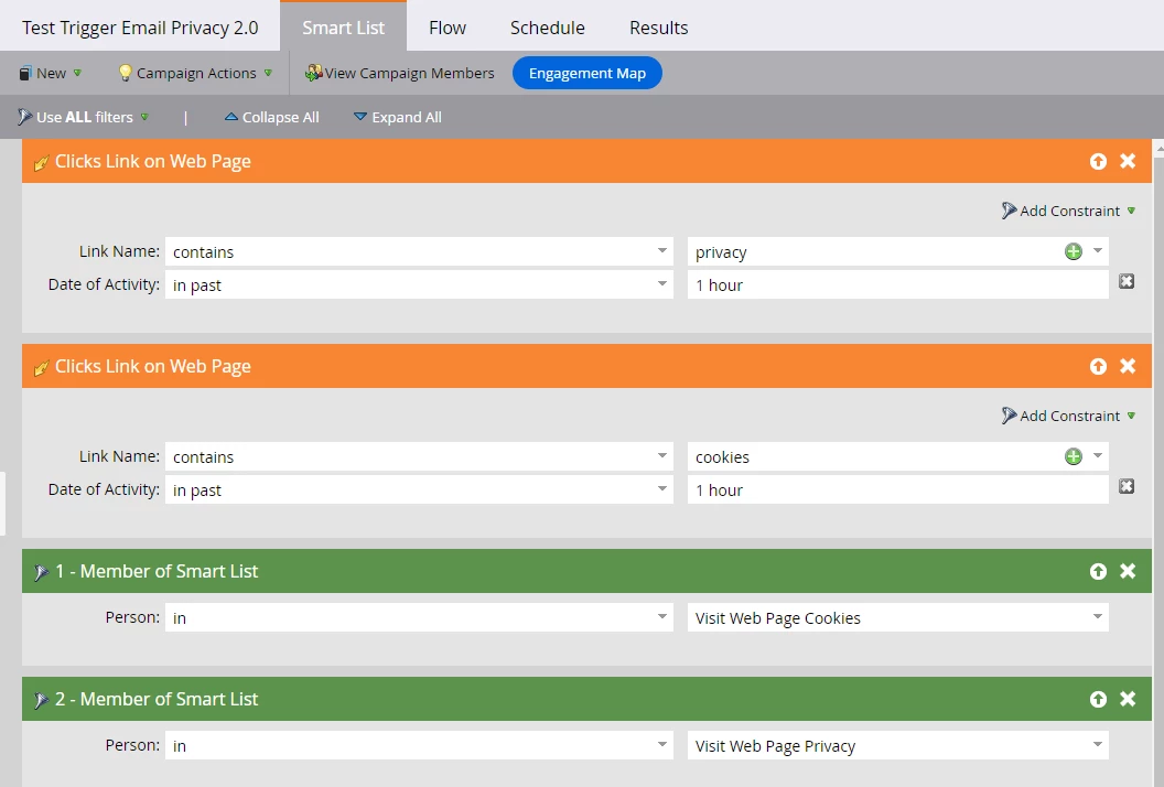 I am looking to create a trigger campaign based on multiple Web Page visits. I can find a work around if there is only two pages, however I would like to extend the amount of web pages from 2 to 4. This mean if someone were to visit any combination of Web page 1, 2,3, or 4 they will then receive an email. The minimum visits a person would need before receiving the email would be 2. With Marketo limitations on triggers I am not able to simply create a single campaign with 4 different triggers. Looking for the best way to tackle this issue.
