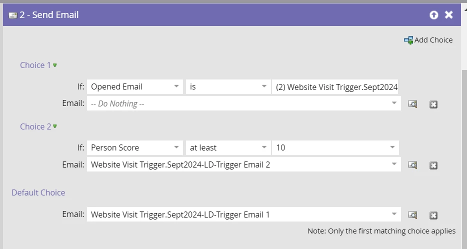 My question concerns future-proofing this trigger campaign to account for contacts who visit the same web page(s) at a later date. I wouldn't want to send them the same email they received previously. I plan on creating two additional emails for contacts who repeatedly return to these web pages, but I'm wondering what the cleanest way to trigger these additional sends is.