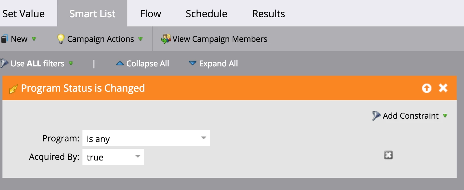I've tried creating a trigger using the changing data value of "Acquisition Program Date" but when I test this, I am finding that the smart campaigns won't fire based on the change of that date value alone. It will only trigger the campaign if you manually go into each lead record and change the acquisition time! Seems odd since time isn't a value we can run automation off of.