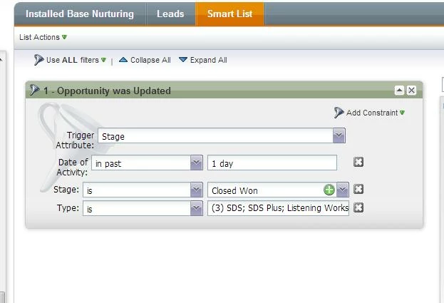 I have added a trigger to one of my nurturing campaigns to trigger on a closed/won opportunity of a certain type. I made a dummy opportunity and saved it and have been waiting 10-15 mins for the trigger to go off. It has not. I also have a smart list which supports the campaign, with the filter "Opportunity Updated in Last 1 Day". This does not show my dummy lead attached to the opportunity. What am I missing? Does the lead have to be PRIMARY contact on the opp to be considered?