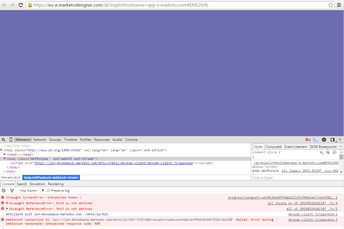 I am trying to edit a draft of an email after I create it as usual and I am getting a purple screen. This is not normal. The browser window just turns purple for me. Could it be Java is not starting? I have tried this on 3 different browsers.