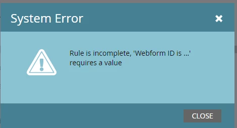 Trying to move program to a new workspace and getting system error: Rule is incomplete, 'Webform ID is ..." requires a value