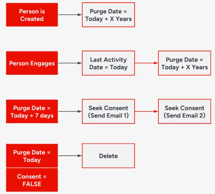 Workflow Customization: Adjust workflows based on business needs, such as retaining data for interested prospects or customers who have given consent.
