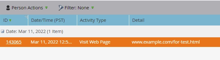 Is there kind of a unique "vistit web page" filter or trigger I can use for PURLs?