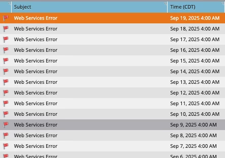 I'm getting daily notifications from our integrations, there's always a Web Services Error notification, however, I'm curious in why it is always shown at 4am. Does this mean that it logs all errors from previous day and show them in the next morning?