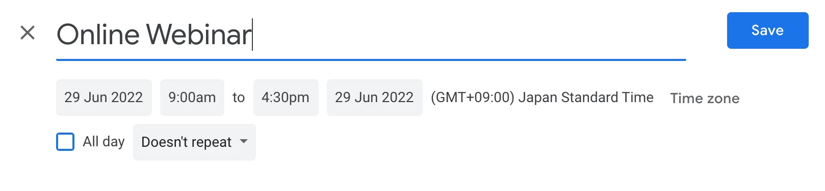 - Check that the Title, Date, and Time of the webinar are correct in your Google calendar