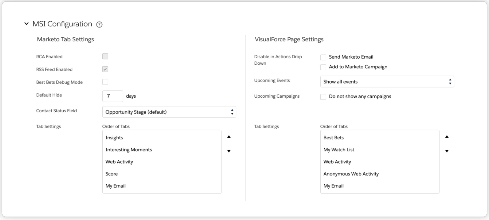 - Tab Settings: Choose the order in which you want to see your favourite MSI tabs
