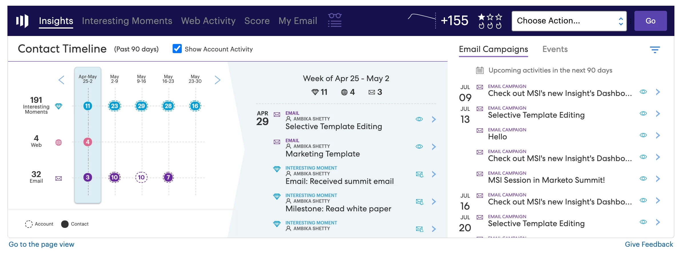 - Contact & Account Activity Timeline - A highly visual summary of customer activities, across channels. You can quickly understand engagement velocity over time, identify trends and even understand preferred channel