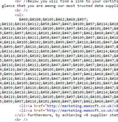 Viewing the browser source indicates that the field content has been encoded: