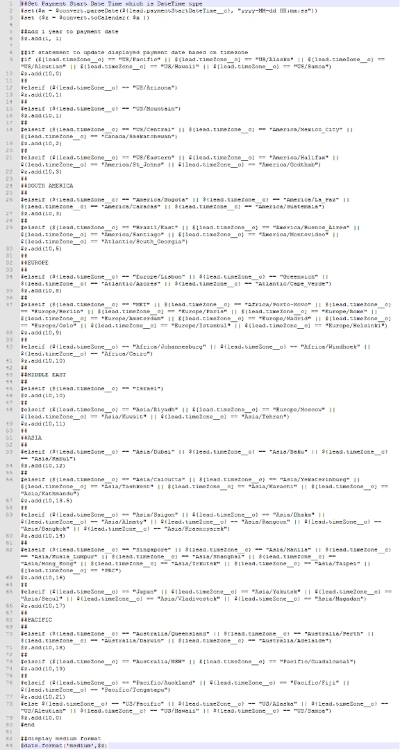 I also need the value displayed to adjust based on the leads time zone, {timeZone_c}.