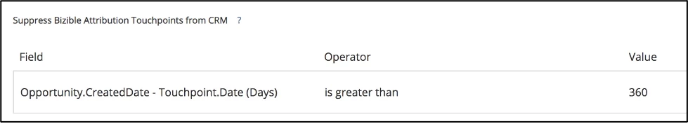 Example 3: Suppressing Buyer Attribution Touchpoints (BATs) that happened a defined number of days before the Opportunity is Opened/Created