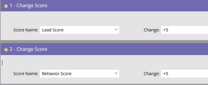 - If you create a custom score field it will not automatically update/feed the default Lead Score field. For example if you have a custom Behavior Score field you will need to use two Change Score flow steps to get the Lead Score field to change the same amount as the Behavior Score field.