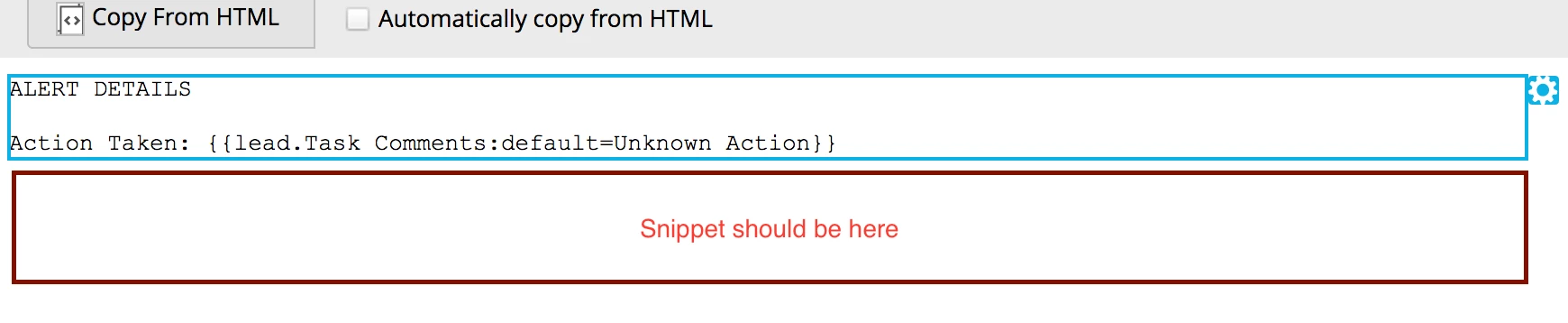 Probably missing something simple, but I'm trying to use a basic setup with a snippet -- two editable sections in an email template, the top one will be unique/editable by the user, while the bottom one will be a snippet so that it's consistent across every email using the template and only has to be modified once to update all of them. HTML version is easy enough and works great, but the text version doesn't seem to have the same section construct where the top portion can be editable, but the bottom part is the snippet's text version (which I have set).