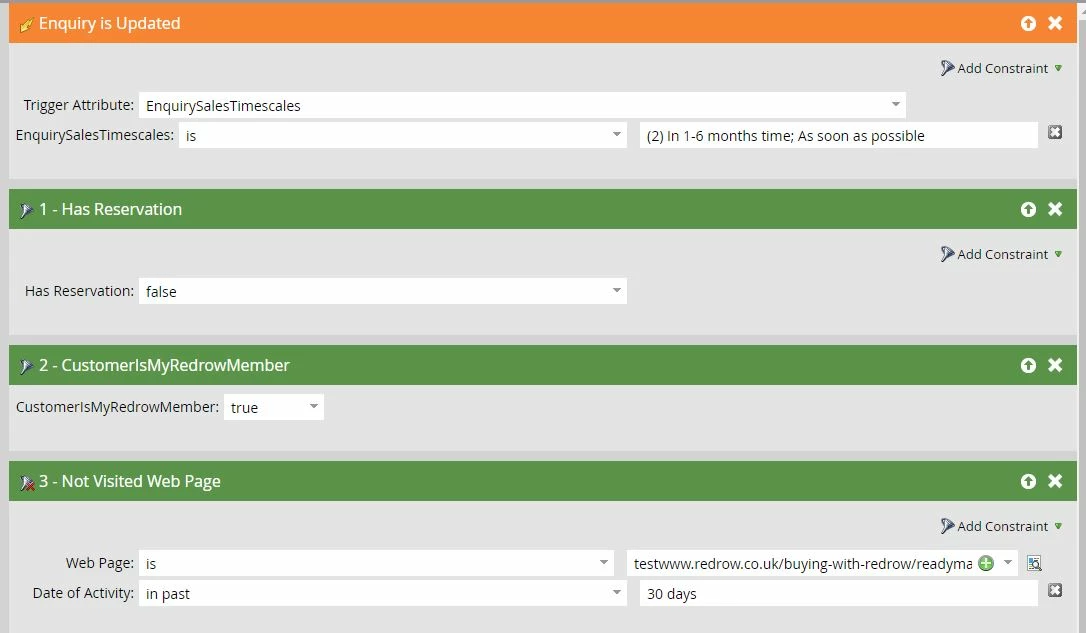 Using a trigger with a constraint filter plus (OR) three other filters