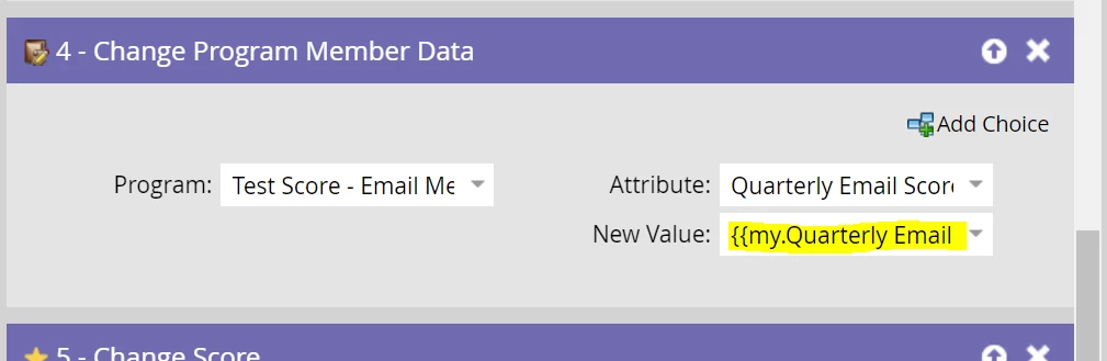 However, for Change Program Member Data , it is not working like a score token, is it because it is a string datatype field.