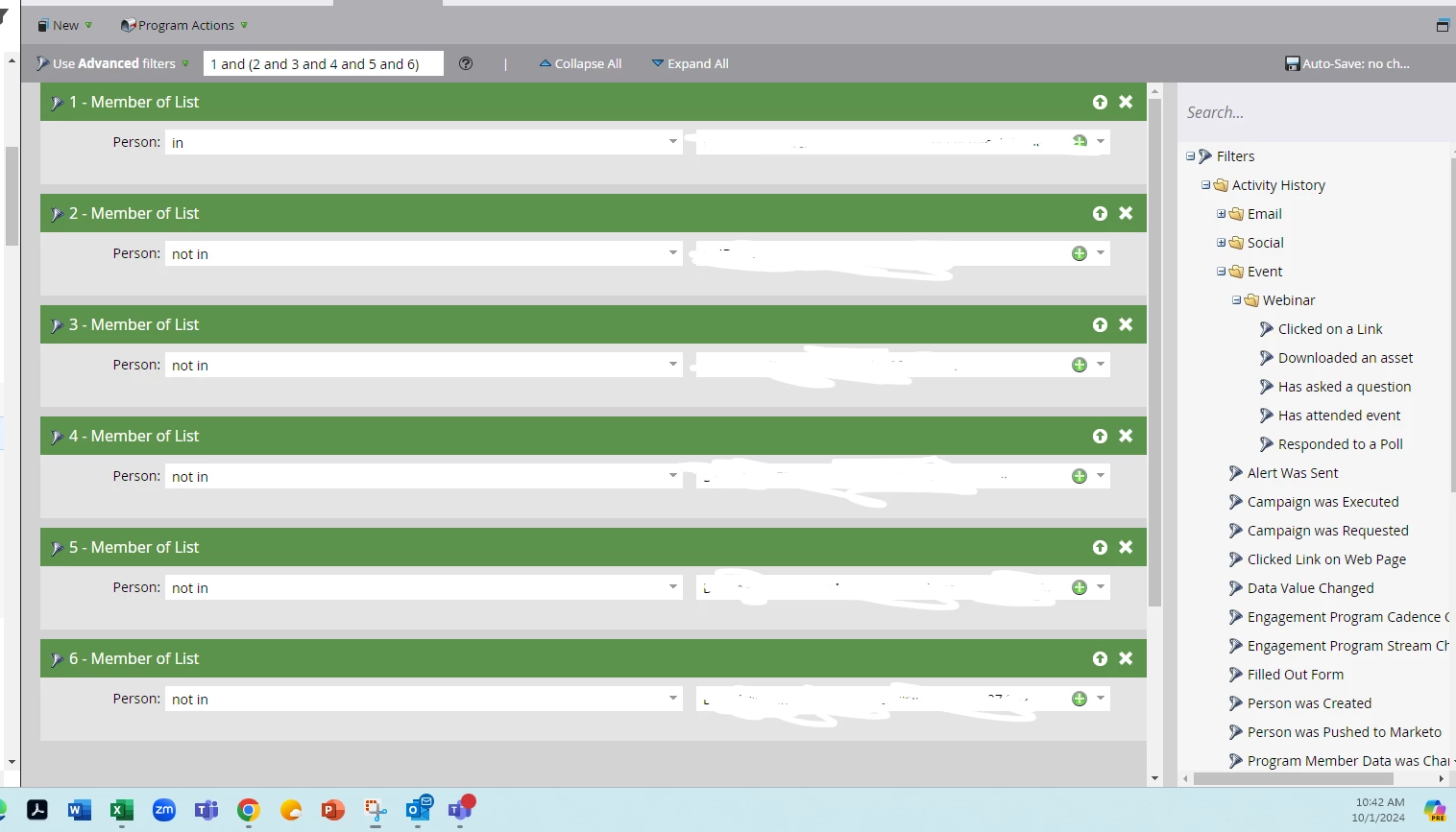 Right now, this is the filter I have: 1 and (2 and 3 and 4 and 5 and 6)