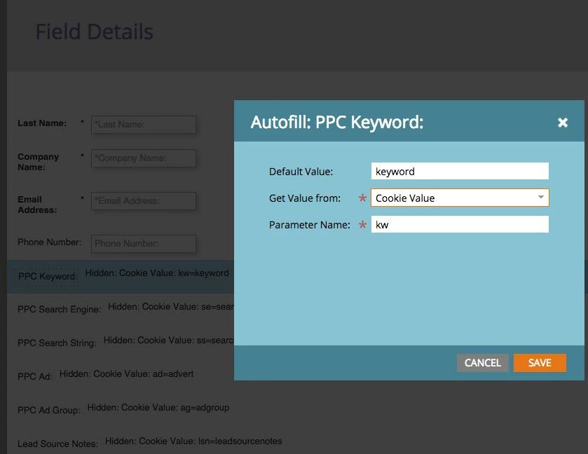 - The form 2.0 hidden field autofill settings can pull from URL parameters, but they may not exist if the lead is clicking around to various pages first.