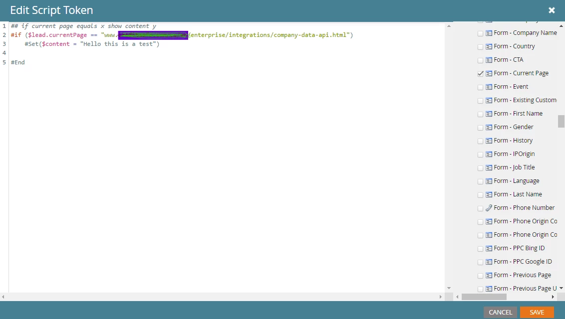 #if($lead.currentPage.equals("www.example.com"))