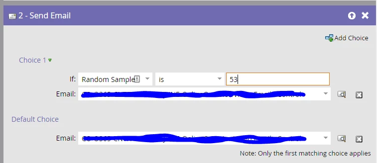 I would like a validation of logic before I send out my upcoming A/B test email. Below I have specific that I want 53% of my leads in this smart campaign to go to the specified email. Is this the correct to way to specify this and ensure that the other 47% of the leads do not go out?