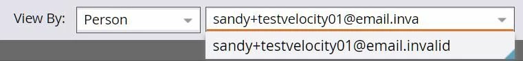 The second reason is more subtle and much more important. When you choose By Person, Marketo dedupes the dropdown options so only one record is available per email address. There are 2 person records with sandy+testvelocity01@email.invalid in this instance: