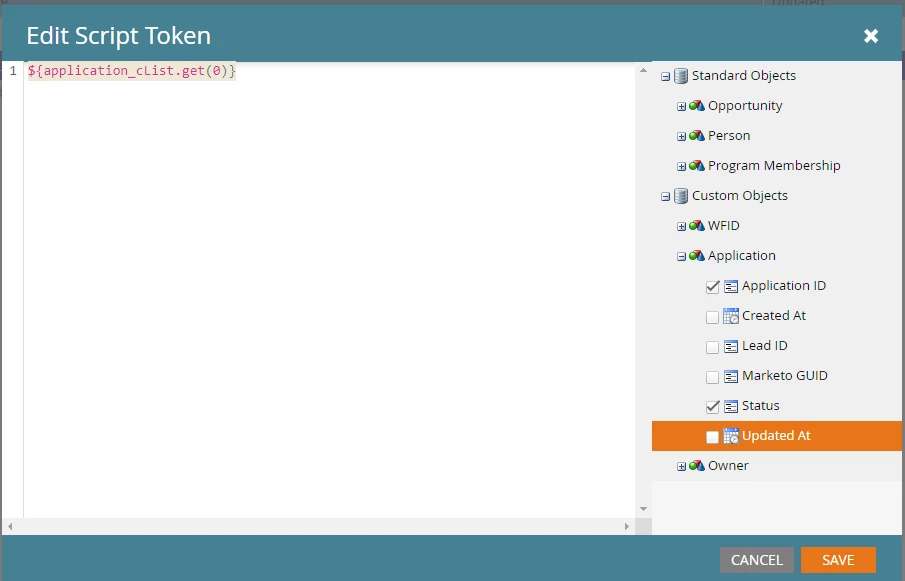 I have a custom object named "application" that is associated with People/Leads. I'm aiming to incorporate the fields from the "application" into an email. This email should be triggered whenever there is a change in the status of any application field. To achieve this, I'm utilizing a velocity email script.