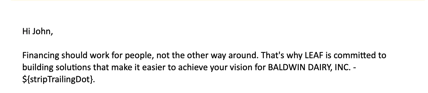 I have an existing lead field that contains the value for user Company Names, and with some company name ending in "Inc." we get an extra period at the end of the sentence where the token is placed.