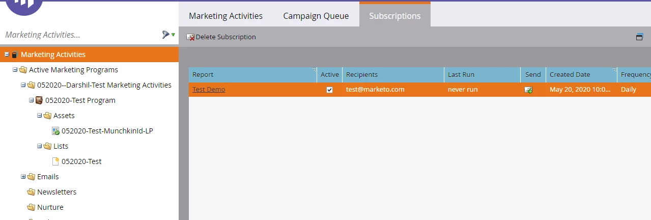 Viewing Smart List Subscriptions when created in Marketing Activities