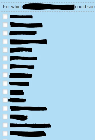 We have a registration form that contains a field with 'Checkboxes' field type listing 30+ product categories (screenshot is below). However, each product category contains 4+ specific product modules that the user might choose from. It would be nice if a subset of checkboxes appeared underneath each product category checkbox when checked off, but I'm not sure if this is possible without using custom code? Another option would be to add visibility rules to field underneath and define the logic, but with 30+ product categories and multiple checkboxes to select from, I'm finding that visibility rules was not designed to handle this level of complexity.