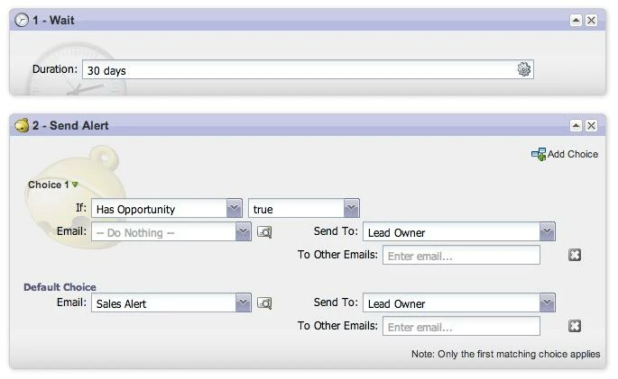 Flow: Wait 30 days and then check to see if opportunity is at a 10% stage, if not then send a sales alert?