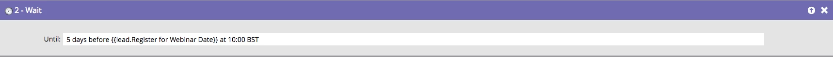 We are launching a recurrent webex campaign. We are sending the confirmation email 5 days before the event they register and for that I am including a wait step token as shown below: