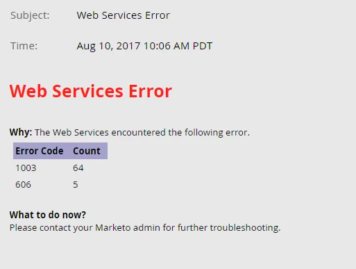We receive a Web Services error 1003 every morning at 10:06am. More often than not, there is also a 606 error at the same time, as well.