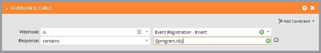 Should the following "webhook is called" trigger work? Can I use tokens – either {{my.tokens}} or {{program.id}} tokens – here?