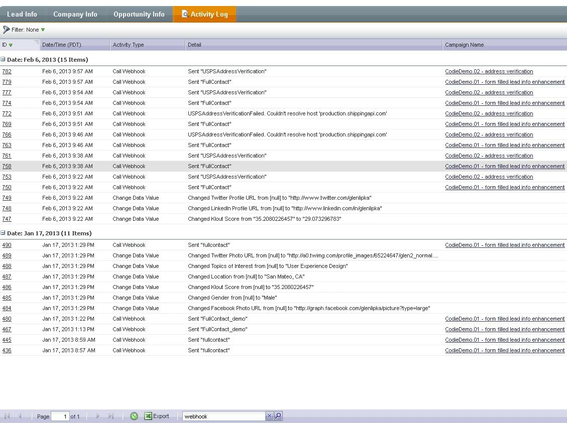 Can someone explain how can I see the response of wenhook call inside Marketo?