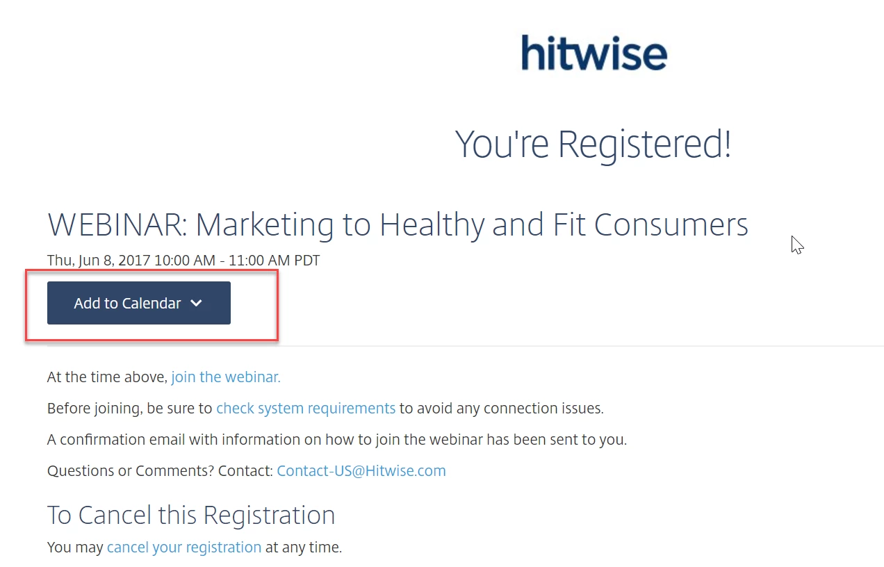 The above is the confirmation page displayed after you register via the default gotowebinar form.