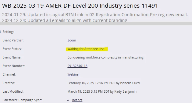 Webinar "Event status: Waiting for Attendee List"