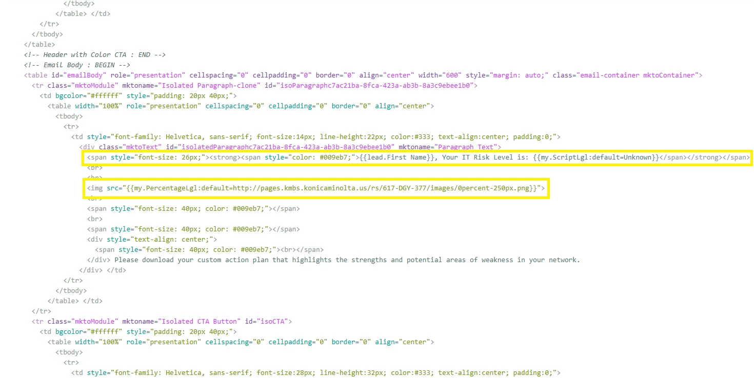 Here is the part of the HTML code for the email that is going out that contains my Velocity tokens: