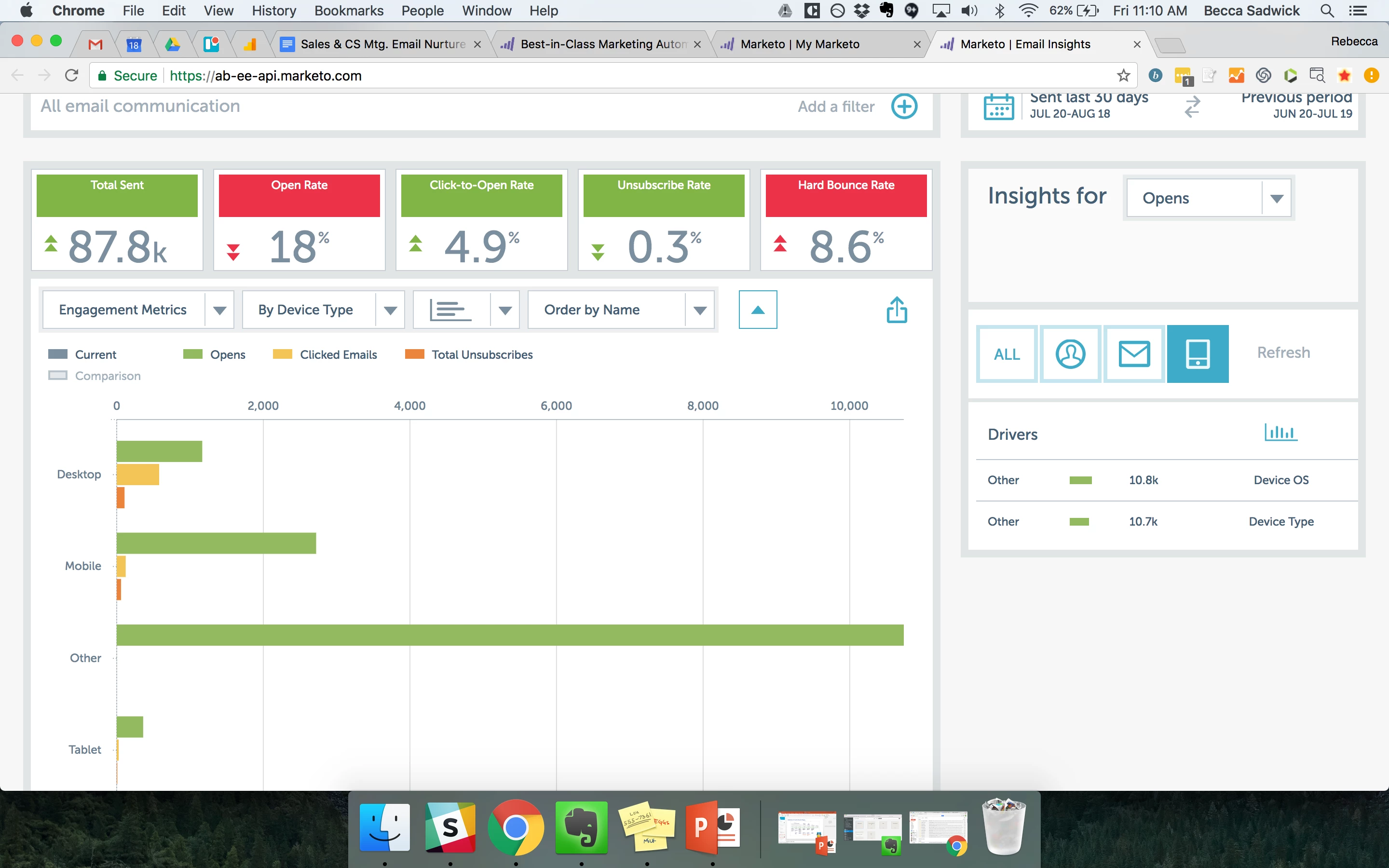 What Are the "other" device types in the email insights dashboard?