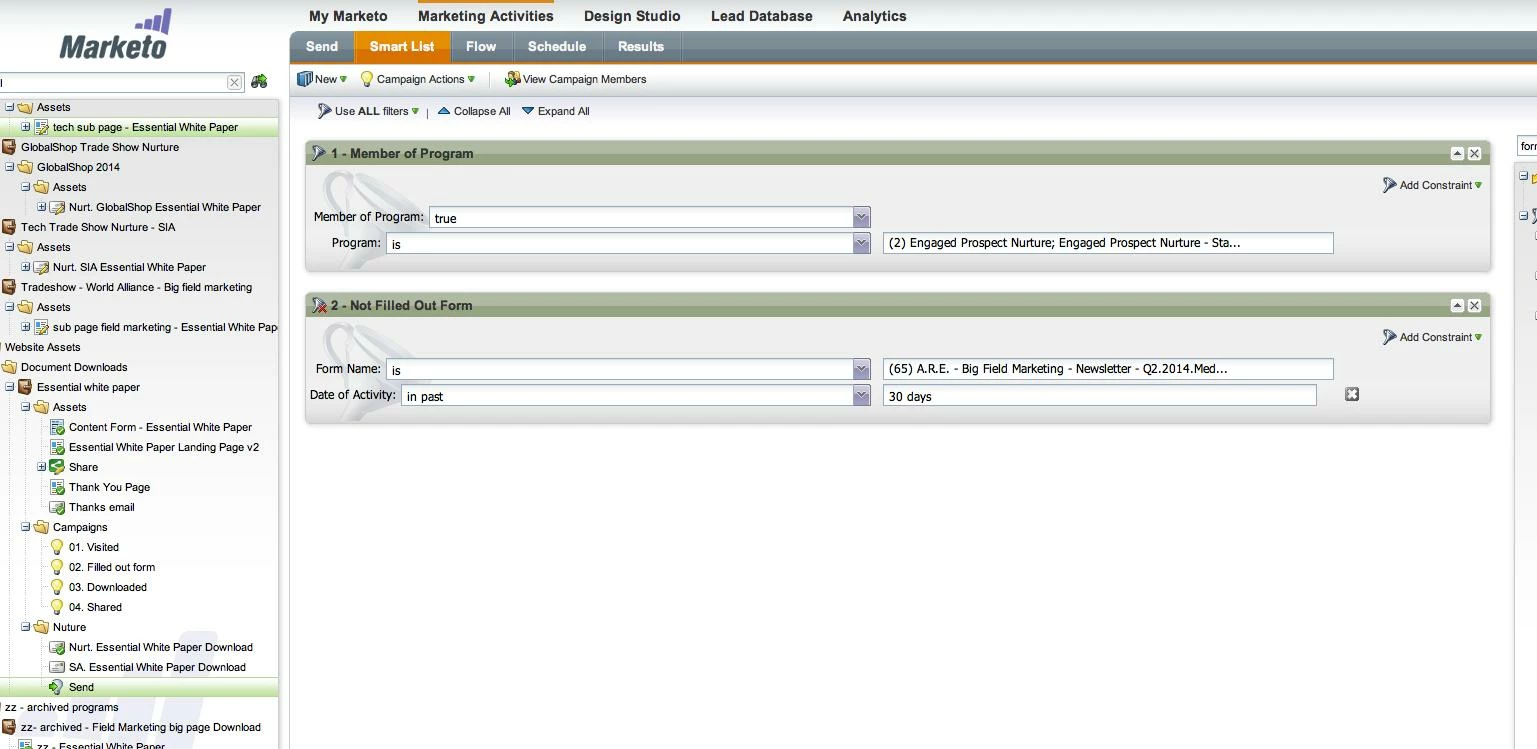 Our engagement programs are based off assets. Most of our leads enter the engagement programs by reviewing one of our assets. Therefore, I want to ensure when they are receiving nurture emails from us, they are only receiving new and fresh content - not content they have already read. What is the best way to do this? I've created a smart list in the Send Campaign for our white paper asset (pictured below). What I'm hoping this gets across is, that if the lead has filled out a any form related to that particular asset, they will not receive the nurturing email related to the asset. Is this the right way to go about it? Thanks!