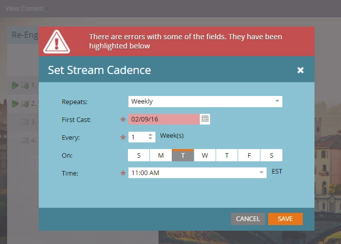 We would like to change the time of the day when our engagement emails are being sent (from 1:30pm to 11:00am), but keeping the same day. When adjusting the time, it forces us to update the FIRST CAST field. Does this mean we are setting the date for the first cast for this cadence?