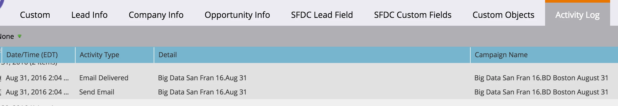 If you would like to also push these marketing emails to SFDC as activities, you can navigate back to the Salesforce Sync options and check "Email Sent" and "Email Delivered".