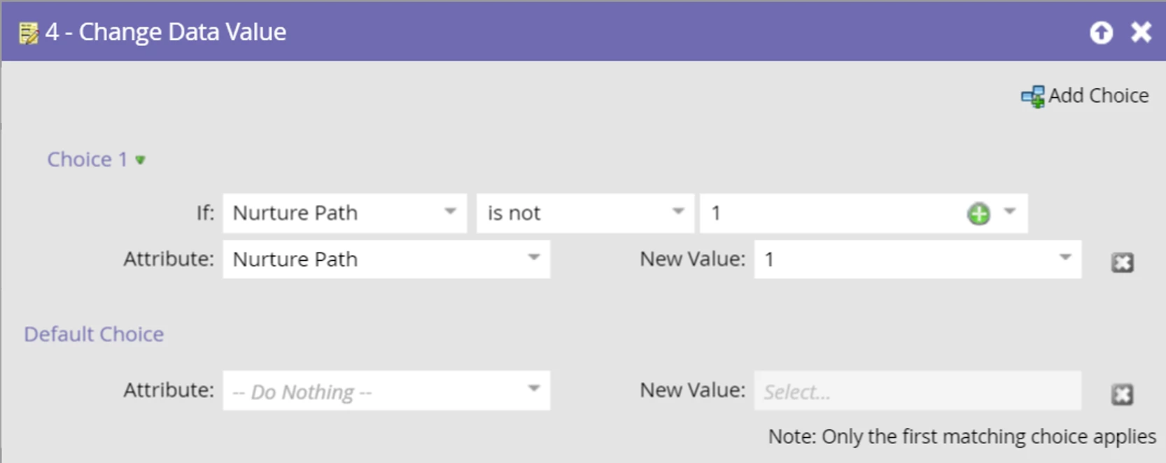 - The lead will only execute this choice step if the value is not "1", the default is to do nothing, and the campaign results will log a "Skipped 'Do Nothing' was set for this choice"