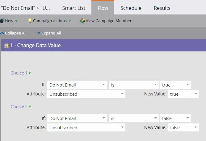 I am making a campaign that adjusts the Unsubscribe field based on if the sales team marks people as "Do Not Email". I've succeeded in doing this using the campaign logic below: