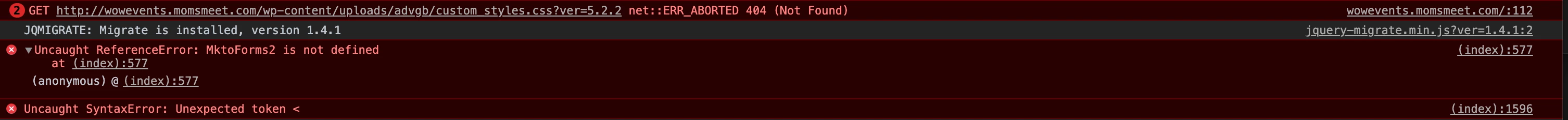 I did notice in the console there is an error: Uncaught ReferenceError: MktoForms2 is not defined