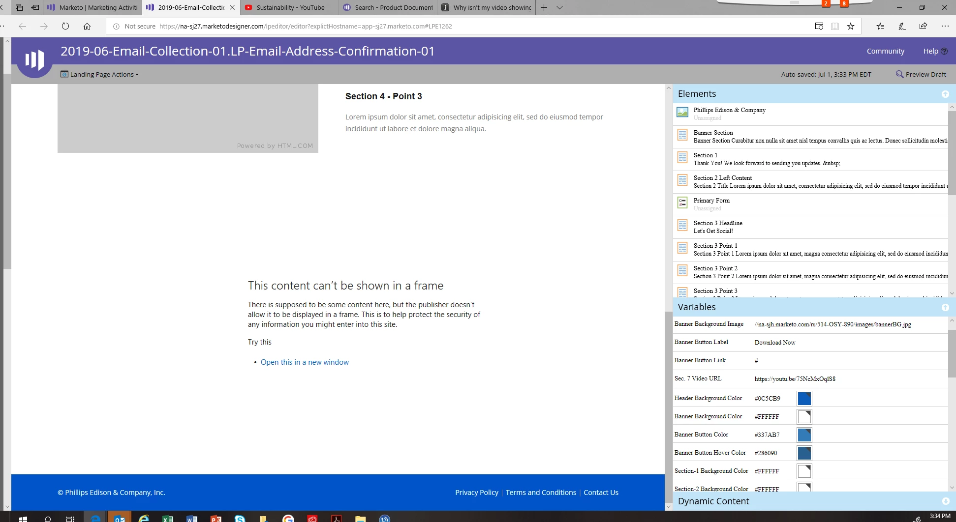 Why isn't my video showing up in the guided landing page template?