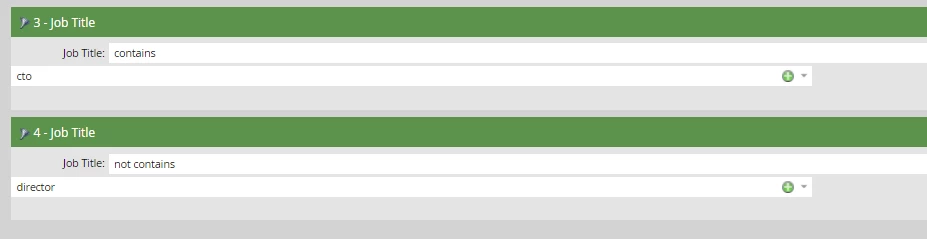 For example, I'd like to pull in CTOs but not Directors (which contains 'cto'). So it should look something like this - % CTO %. However, I've tried numerous iterations of wildcard patterns (and job titles) for testing purposes but it always returns zero contacts.